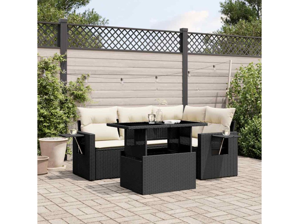 5dílná zahradní sedací souprava s poduškami černá polyratan 3267876