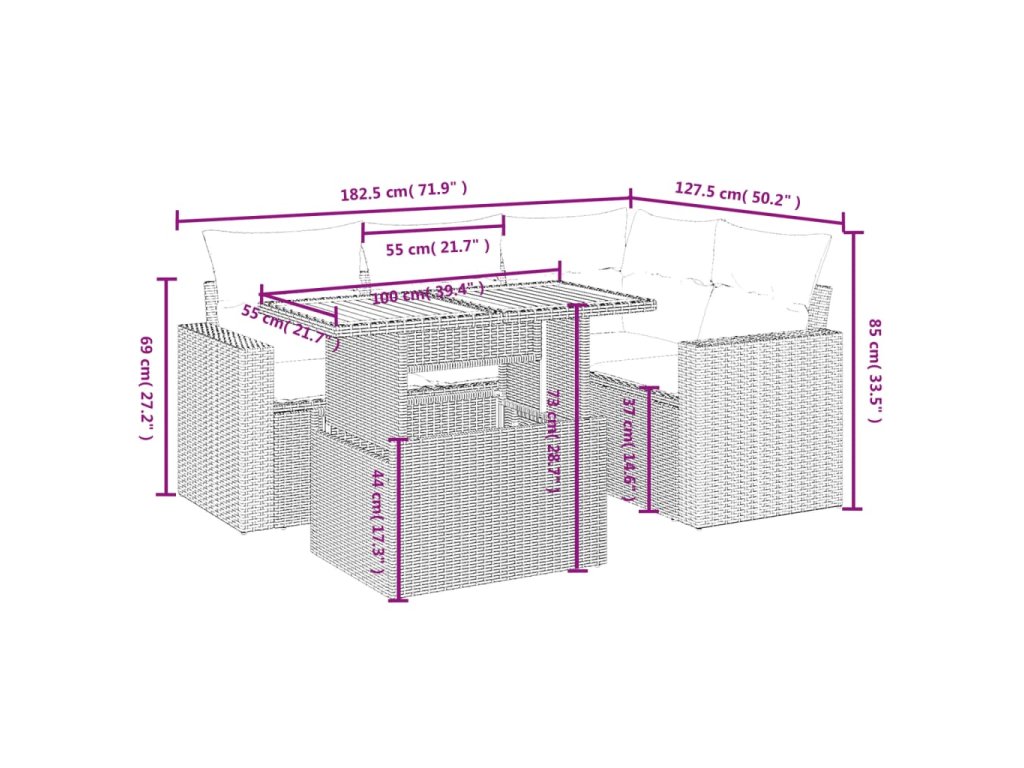 Tato zahradní sedací souprava je dokonalým doplňkem vaší zahrady, terasy nebo dvorku a poskytne vám pohodlné a příjemné místo, kde si můžete povídat s rodinou a přáteli nebo jen tak odpočívat a užívat si pobyt venku.