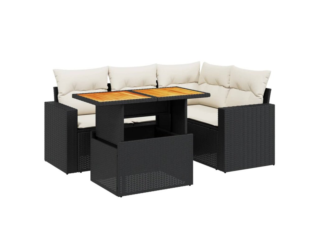 5dílná zahradní sedací souprava s poduškami černá polyratan 3271294