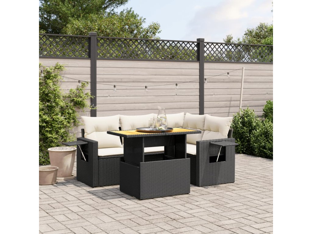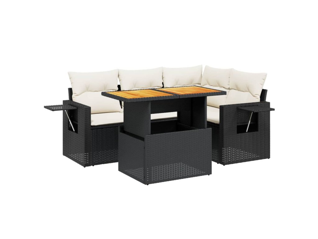 5dílná zahradní sedací souprava s poduškami černá polyratan 3271735