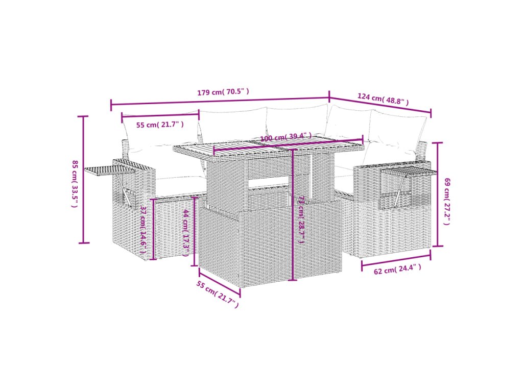Tato zahradní sedací souprava je dokonalým doplňkem vaší zahrady, terasy nebo dvorku a poskytne vám pohodlné a příjemné místo, kde si můžete povídat s rodinou a přáteli nebo jen tak odpočívat a užívat si pobyt venku.