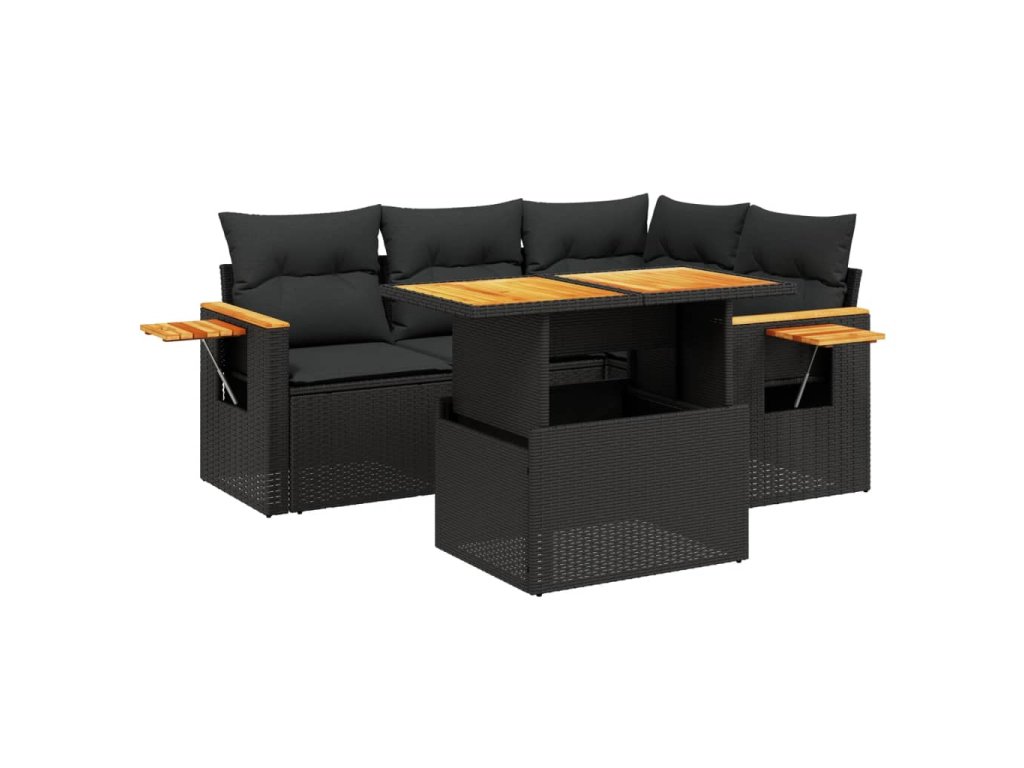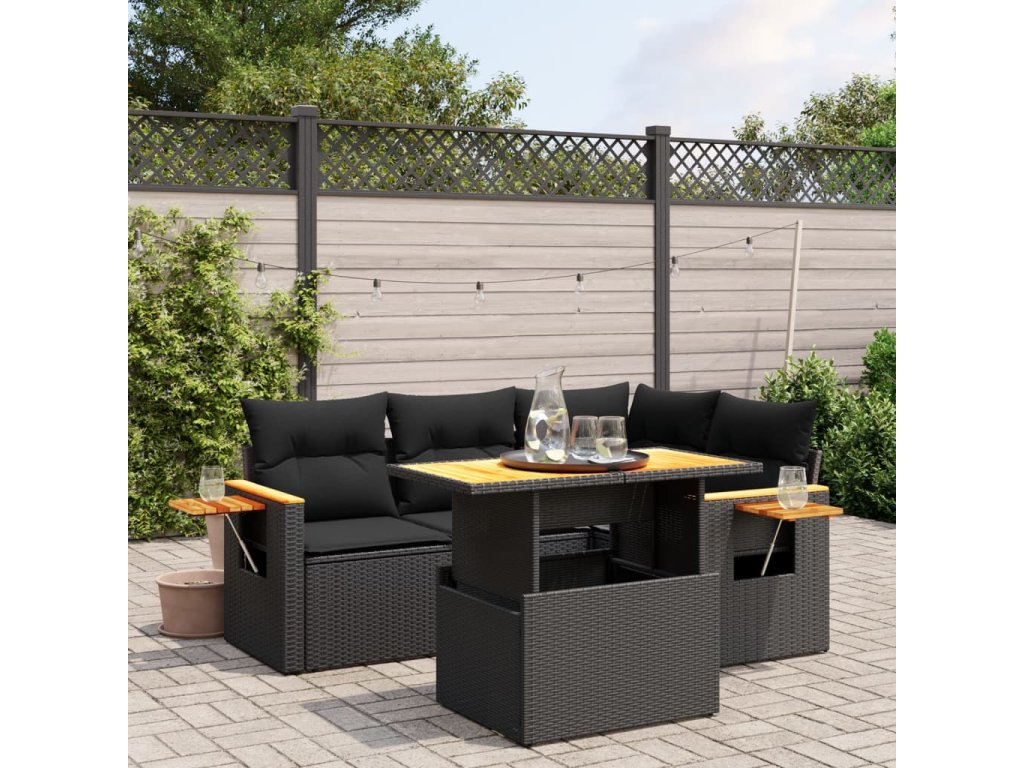 5dílná zahradní sedací souprava s poduškami černá polyratan 3273498