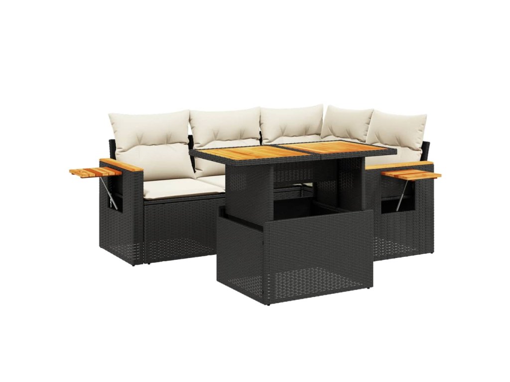 5dílná zahradní sedací souprava s poduškami černá polyratan 3273499