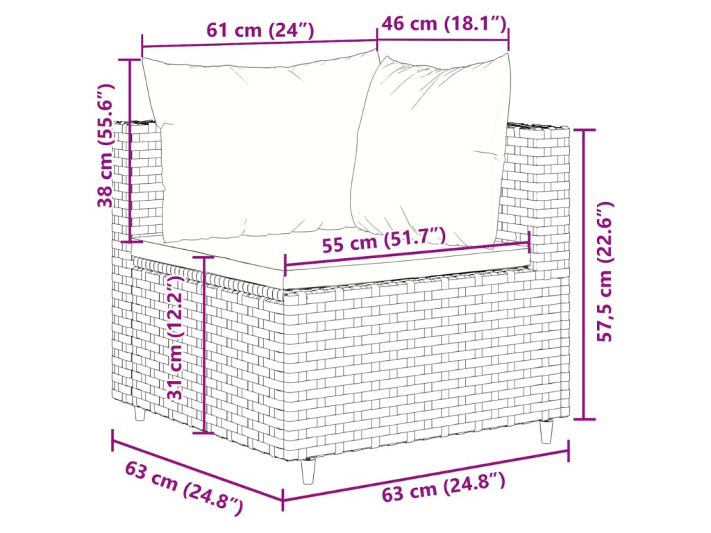 - Rozměry podušky na sedák: 55/63 x 55 x 3 cm (Š x H x T)