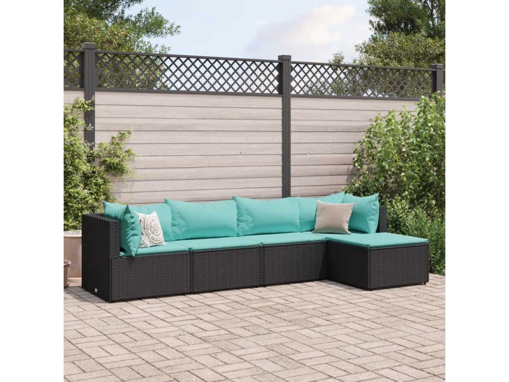 5dílná zahradní sedací souprava s poduškami černá polyratan 3308060