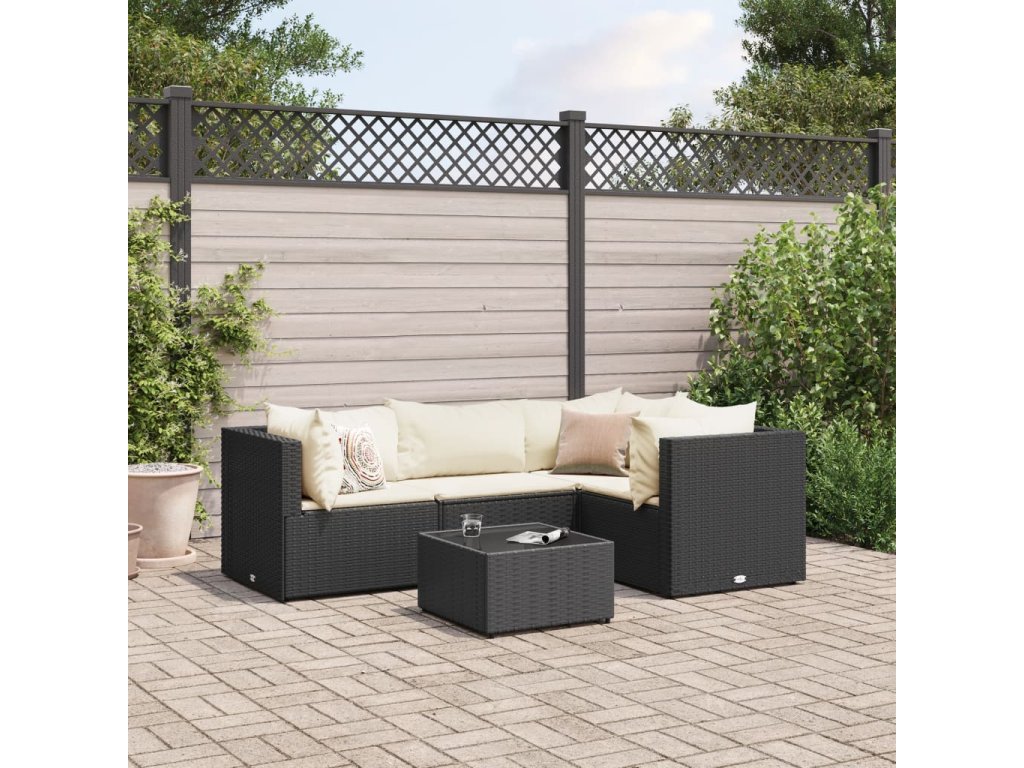 5dílná zahradní sedací souprava s poduškami černá polyratan 3308080