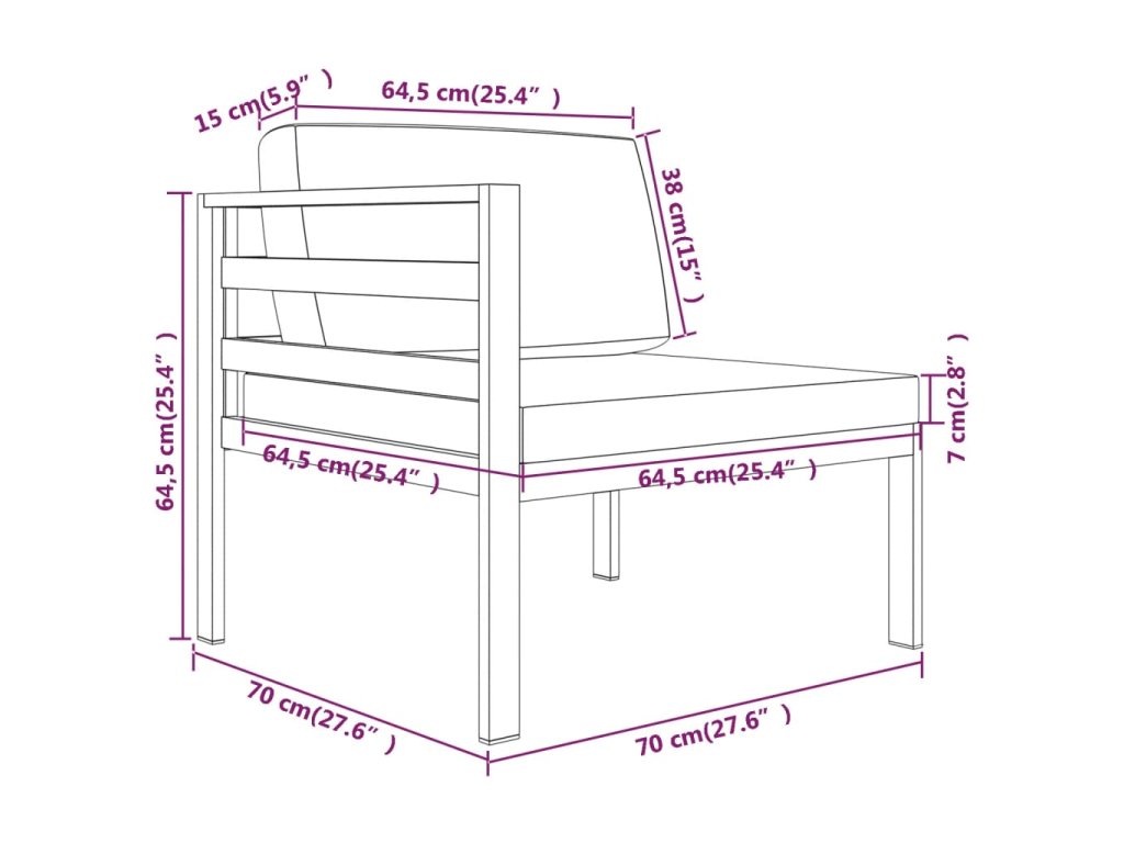 - Rozměry středové pohovky: 64,5 x 70 x 64,5 cm (Š x H x V)