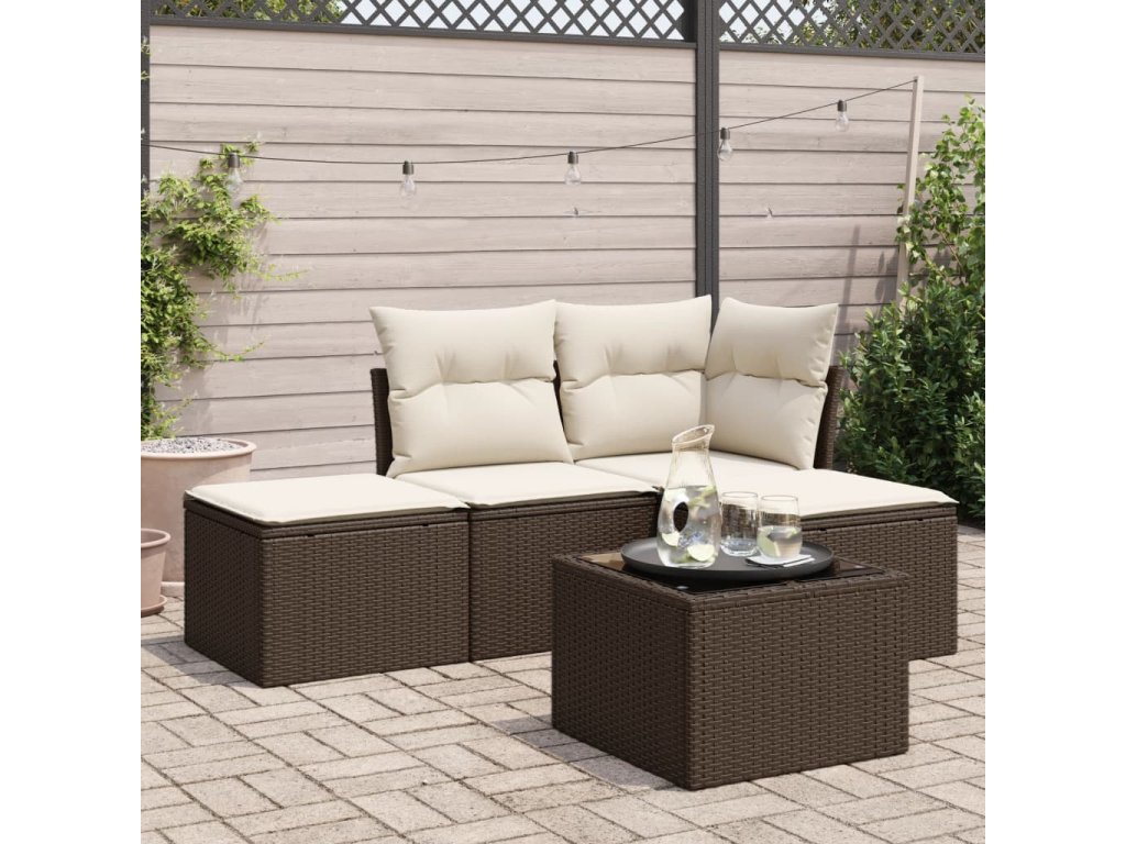 5dílná zahradní sedací souprava s poduškami hnědá polyratan 3217493