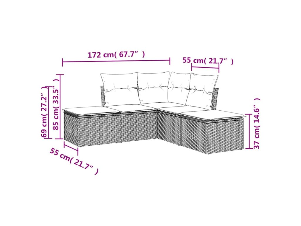 Tato zahradní sedací souprava je dokonalým doplňkem vaší zahrady, terasy nebo dvorku a poskytne vám pohodlné a příjemné místo, kde si můžete povídat s rodinou a přáteli nebo jen tak odpočívat a užívat si pobyt venku.