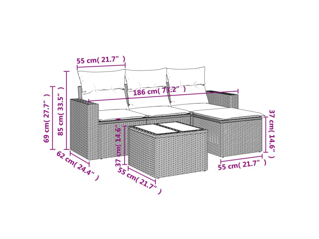 Tato zahradní sedací souprava je dokonalým doplňkem vaší zahrady, terasy nebo dvorku a poskytne vám pohodlné a příjemné místo, kde si můžete povídat s rodinou a přáteli nebo jen tak odpočívat a užívat si pobyt venku.