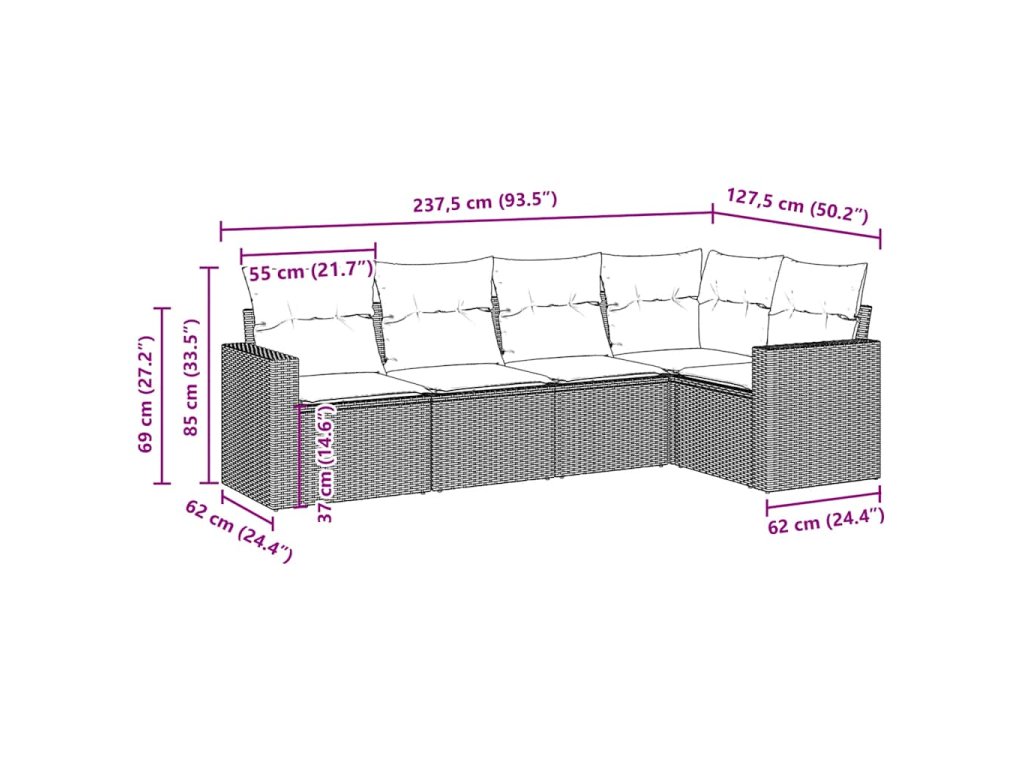 Tato zahradní sedací souprava je dokonalým doplňkem vaší zahrady, terasy nebo dvorku a poskytne vám pohodlné a příjemné místo, kde si můžete povídat s rodinou a přáteli nebo jen tak odpočívat a užívat si pobyt venku.