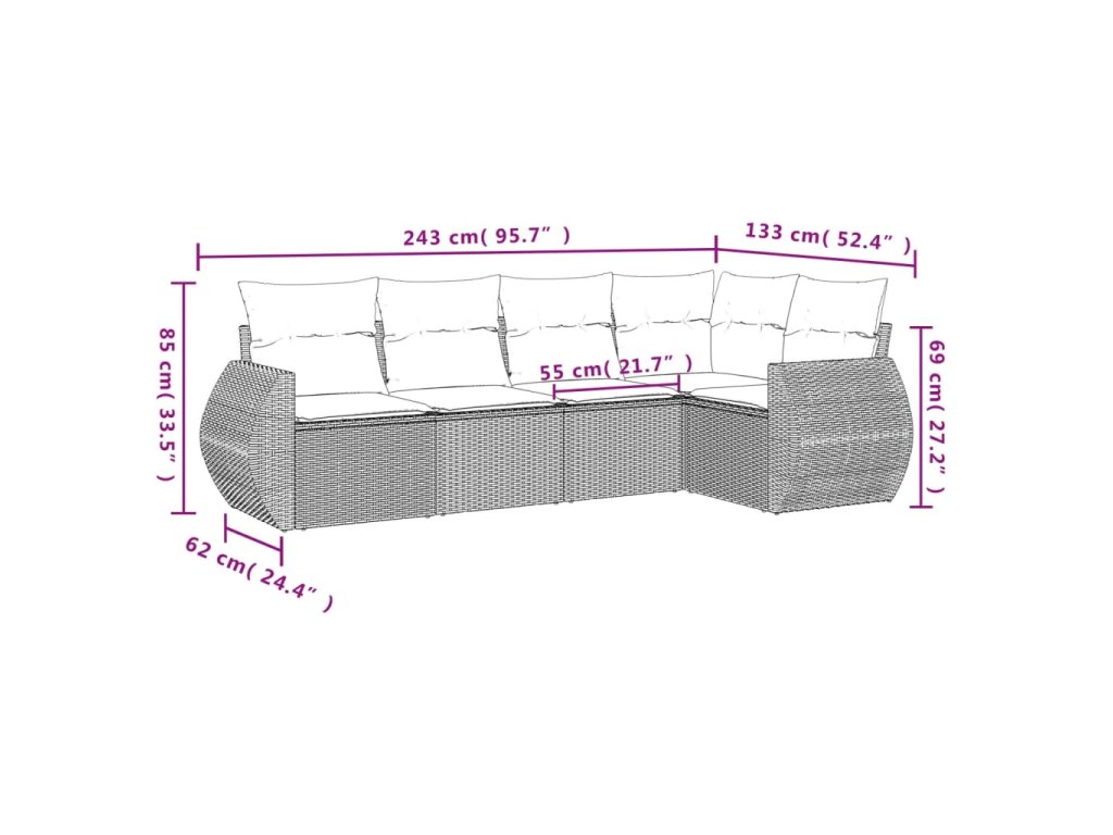 5dílná zahradní sedací souprava s poduškami hnědá polyratan 3221332
