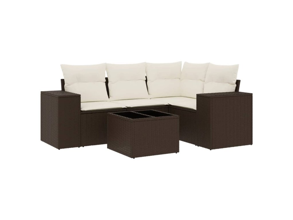 5dílná zahradní sedací souprava s poduškami hnědá polyratan 3222522