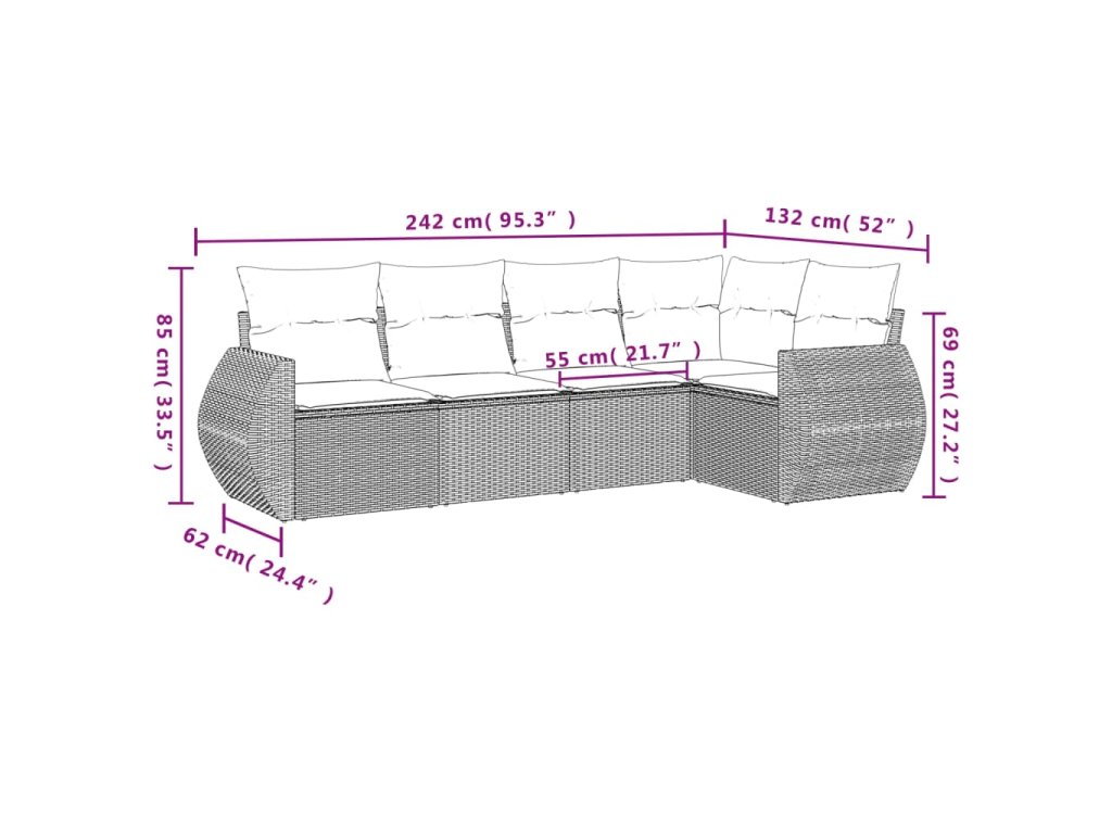 5dílná zahradní sedací souprava s poduškami hnědá polyratan 3253670