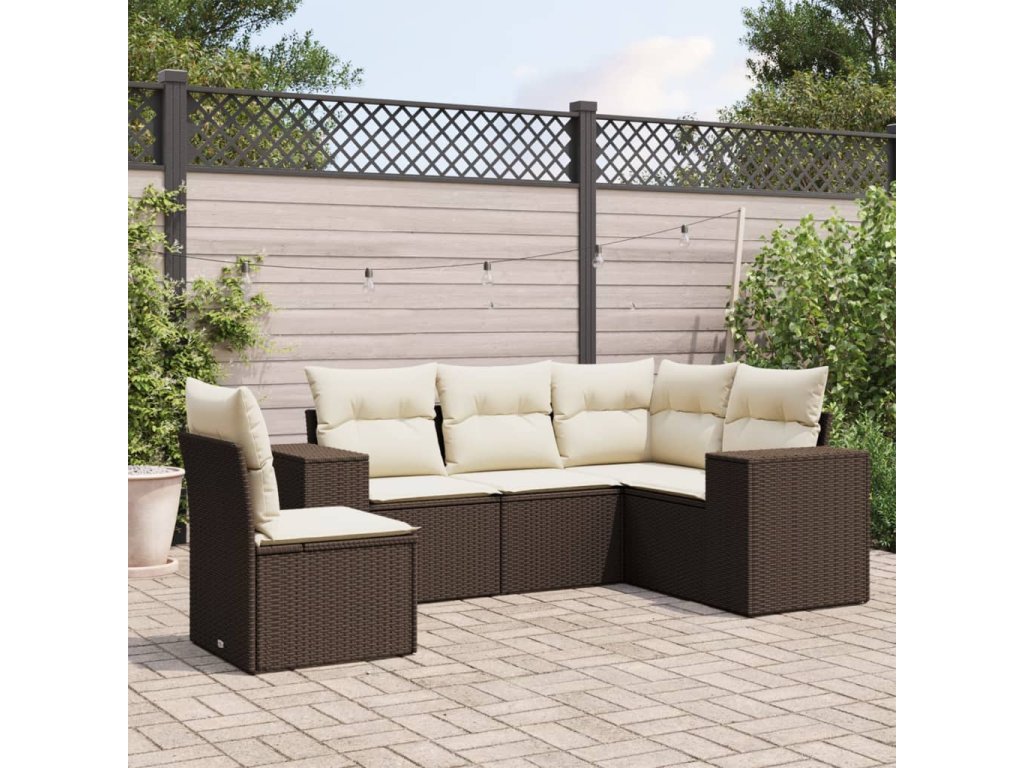 5dílná zahradní sedací souprava s poduškami hnědá polyratan 3254910