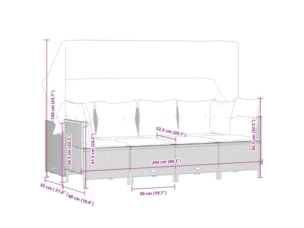 - Rozměry bez stříšky: 204 x 55 x 69,5 cm (Š x H x V)