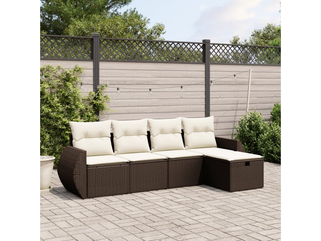 5dílná zahradní sedací souprava s poduškami hnědá polyratan 3264089