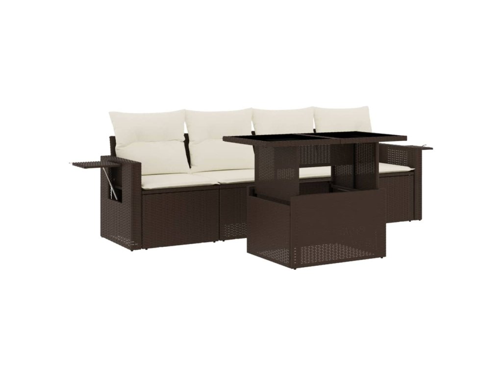 5dílná zahradní sedací souprava s poduškami hnědá polyratan 3267733