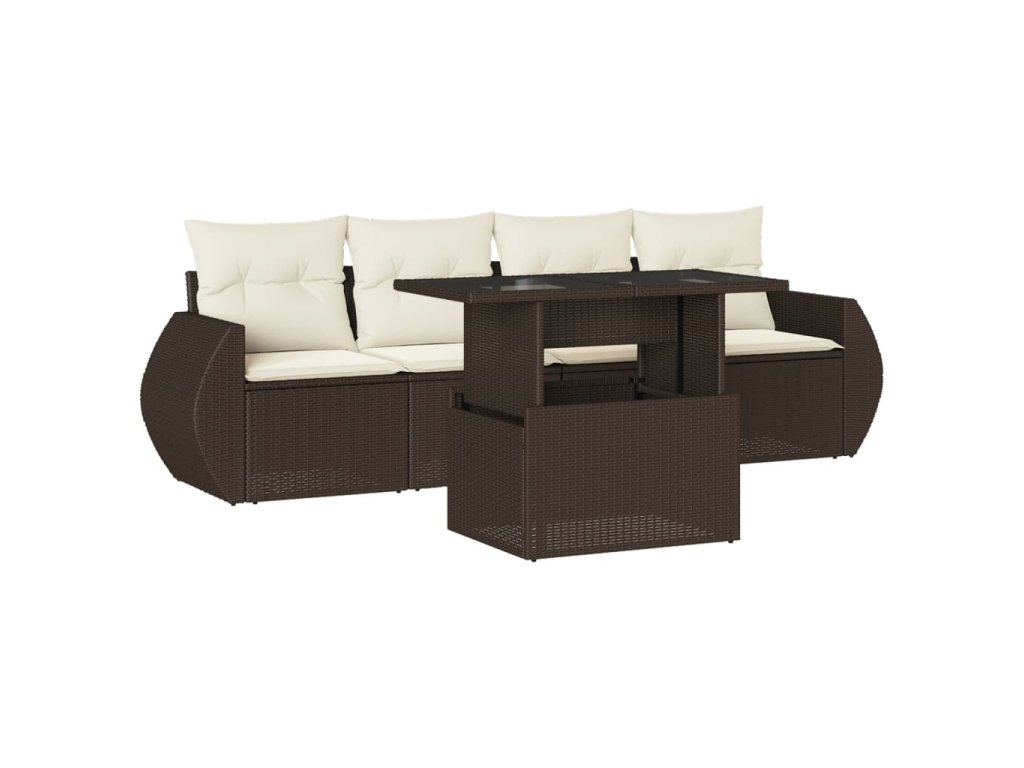 5dílná zahradní sedací souprava s poduškami hnědá polyratan 3268363