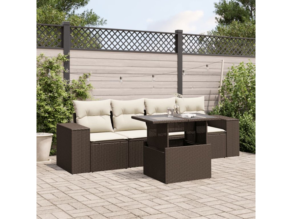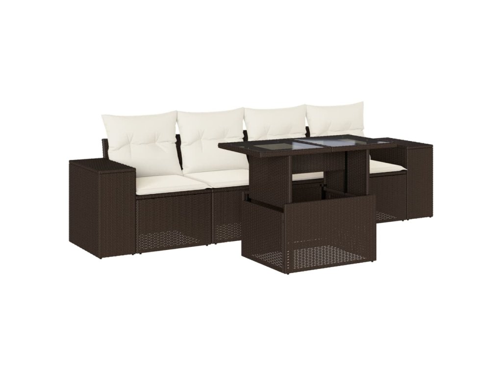 5dílná zahradní sedací souprava s poduškami hnědá polyratan 3268993