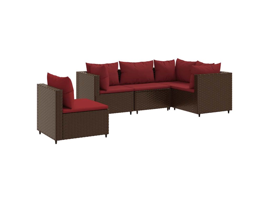 5dílná zahradní sedací souprava s poduškami hnědá polyratan 3308157