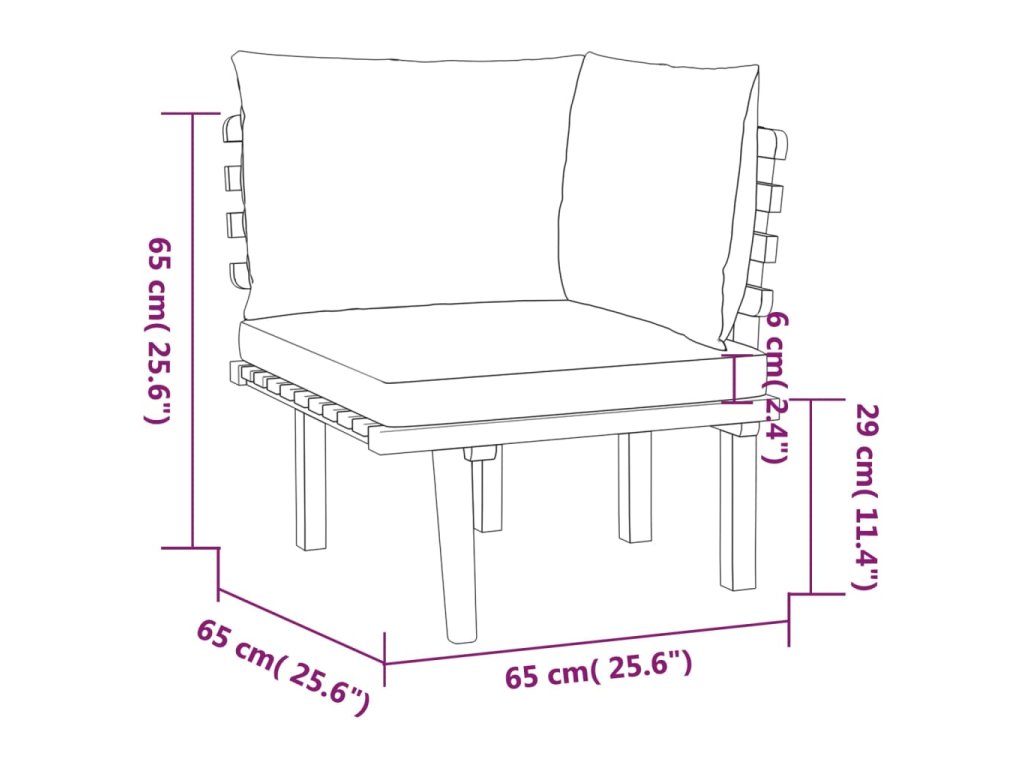 - Rozměry rohové pohovky: 65 x 65 x 65 cm (Š x H x V)