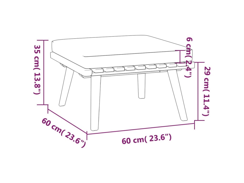 - Rozměry podnožky: 60 x 60 x 29 cm (Š x H x V)