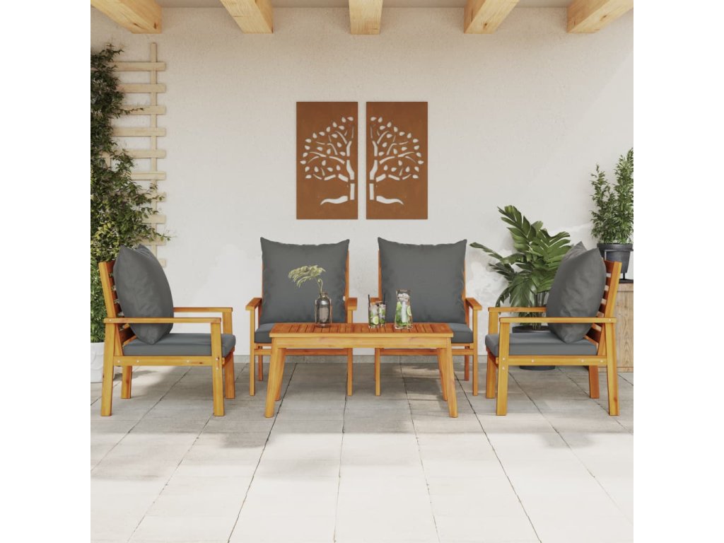 - Masivní akáciové dřevo: Venkovní sedací souprava je vyrobena z masivního akáciového dřeva, které zajišťuje pevnost a odolnost. Masivní akáciové dřevo je nádherný přírodní materiál. Vzhledem ke krásné kresbě akáciového dřeva je každý kus nábytku jedinečný a lehce se liší od ostatních.