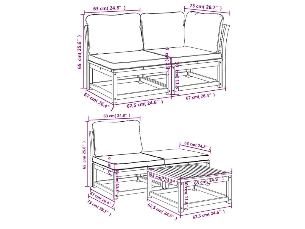 - Modulární design: Tato sada venkovního nábytku se vyznačuje modulární konstrukcí, je tedy zcela flexibilní a lze ji snadno přemisťovat, takže si můžete uspořádat venkovní nábytek dle vašich potřeb.