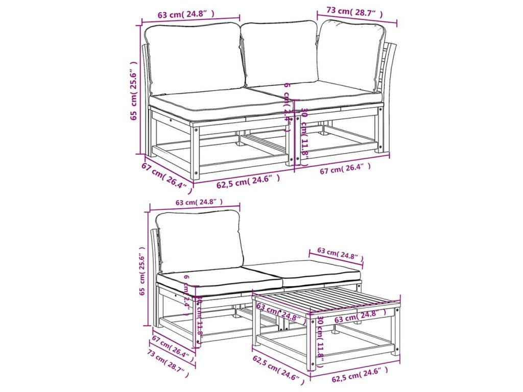 Tato dřevěná zahradní sedací souprava s poduškami má elegantní design a je skvělou volbou pro odpočinek a zábavu na zahradě nebo terase.