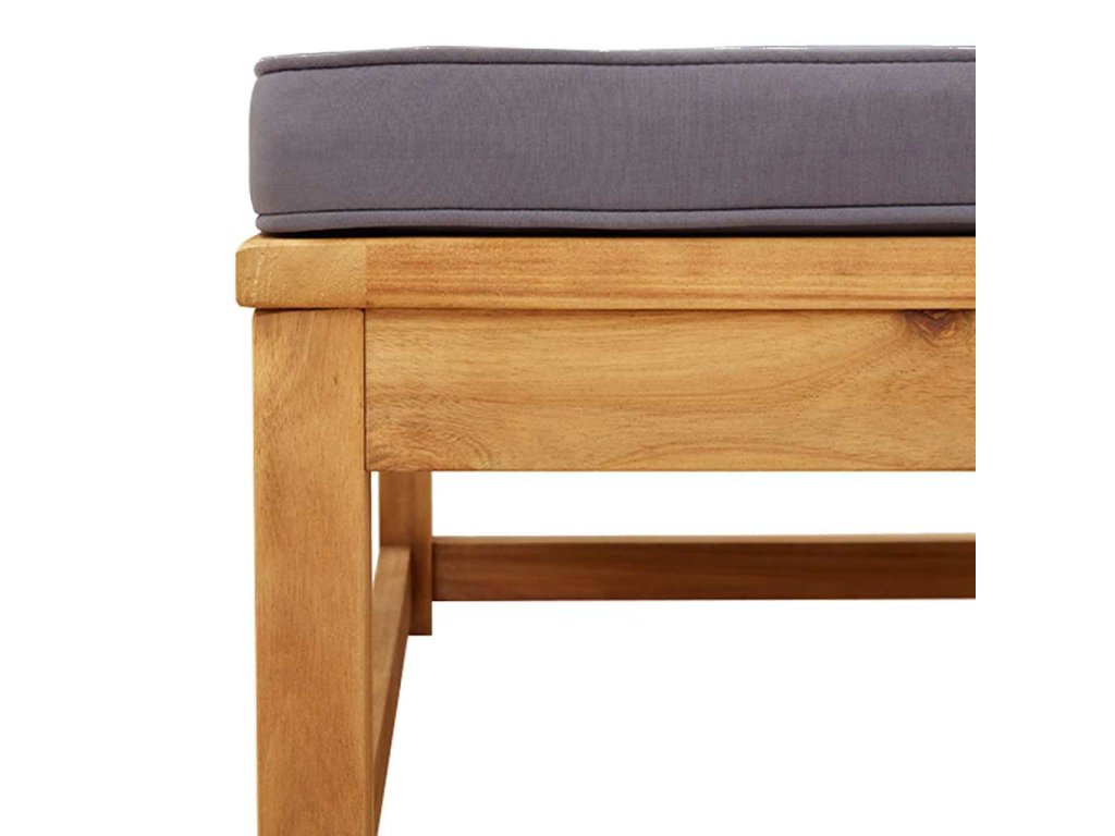 - Lamelový design: Lamelová konstrukce dřevěné sestavy účinně zabraňuje hromadění vody a zajišťuje tak, že sedák zůstane suchý a chráněný proti případné hnilobě.