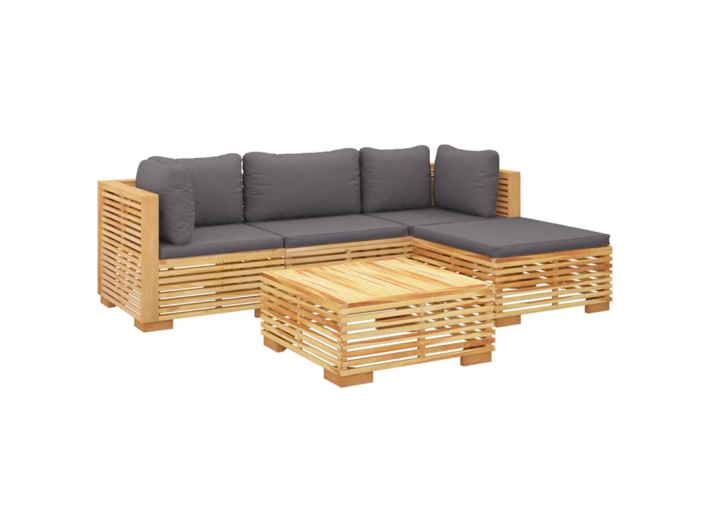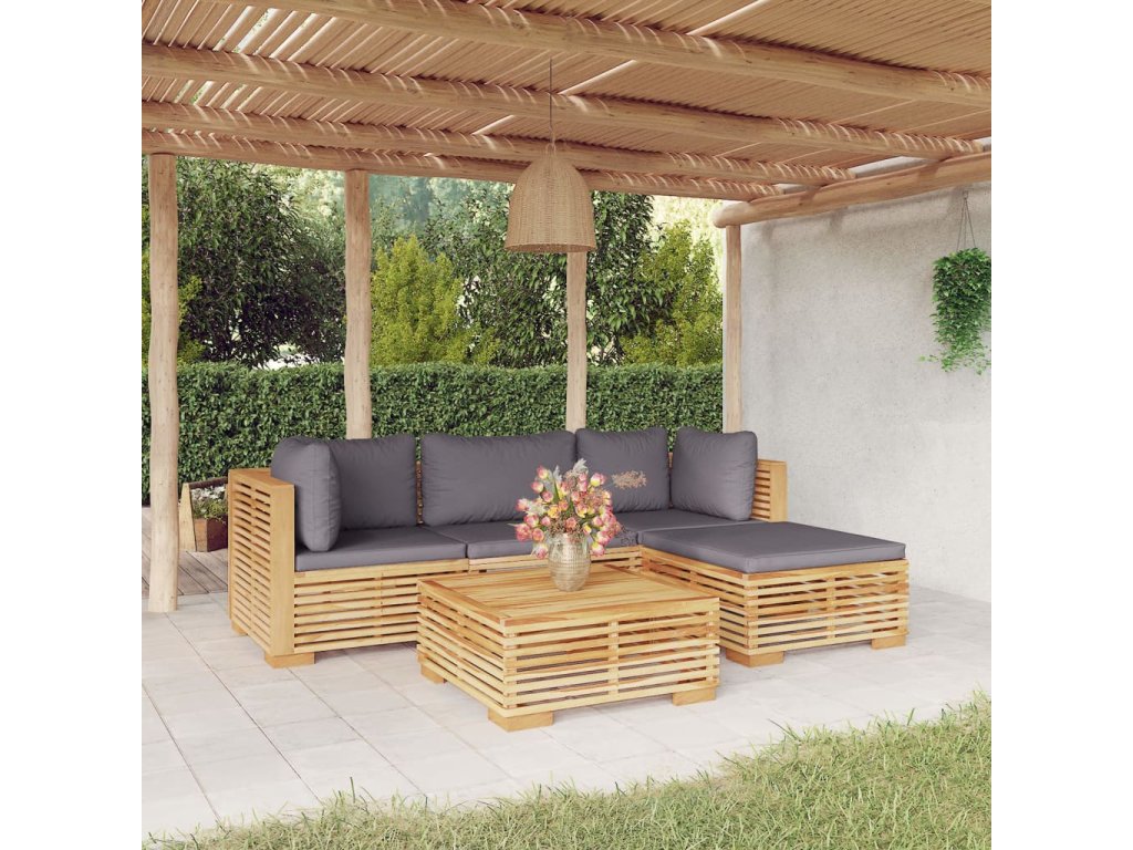 5dílná zahradní sedací souprava s poduškami masivní teak 3100914