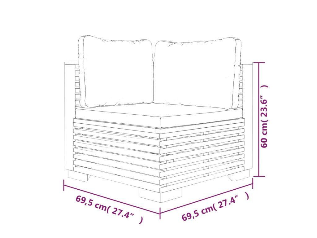 - Rozměry rohové pohovky: 69,5 x 69,5 x 60 cm (Š x H x V)