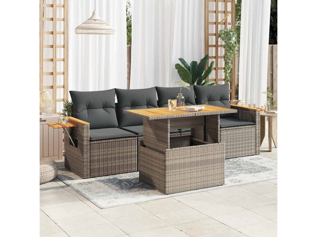 5dílná zahradní sedací souprava s poduškami polyratan akácie 3327546