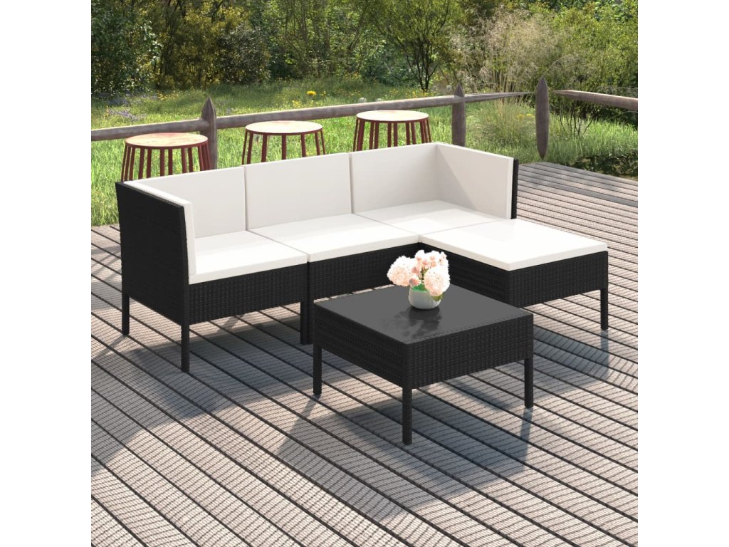 5dílná zahradní sedací souprava s poduškami polyratan černá 3094376