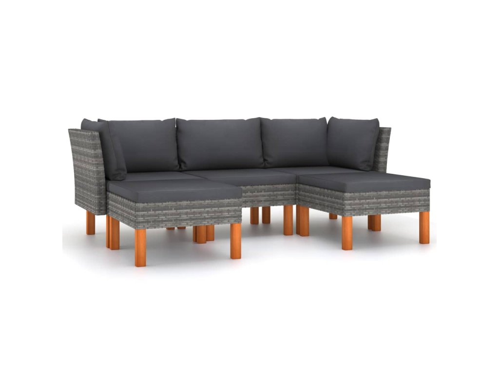 5dílná zahradní sedací souprava s poduškami polyratan šedá 3059711