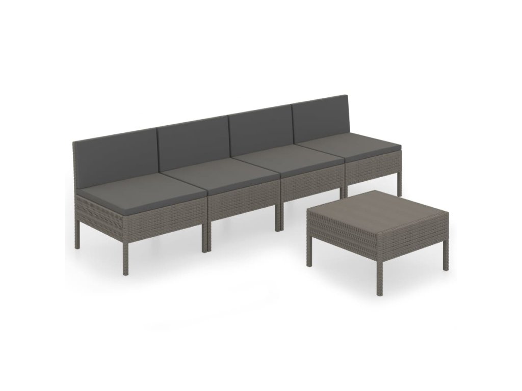 5dílná zahradní sedací souprava s poduškami polyratan šedá 3094326