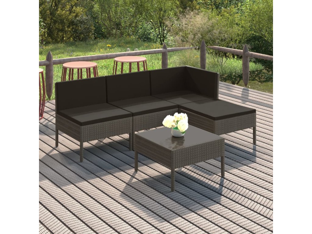 5dílná zahradní sedací souprava s poduškami polyratan šedá 3094366