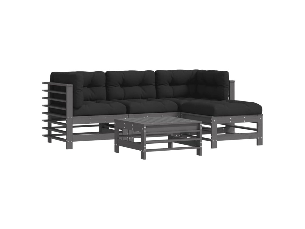 5dílná zahradní sedací souprava s poduškami šedá masivní dřevo 3185803