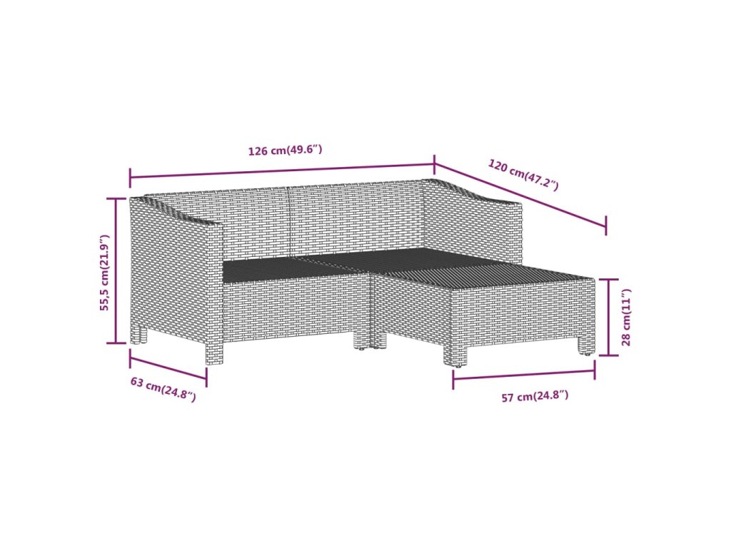 - Rozměry: 57 x 57 x 28 cm (Š x H x V)
