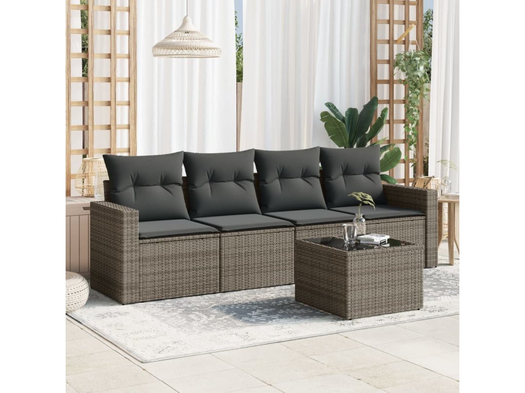 5dílná zahradní sedací souprava s poduškami šedá polyratan 3218680