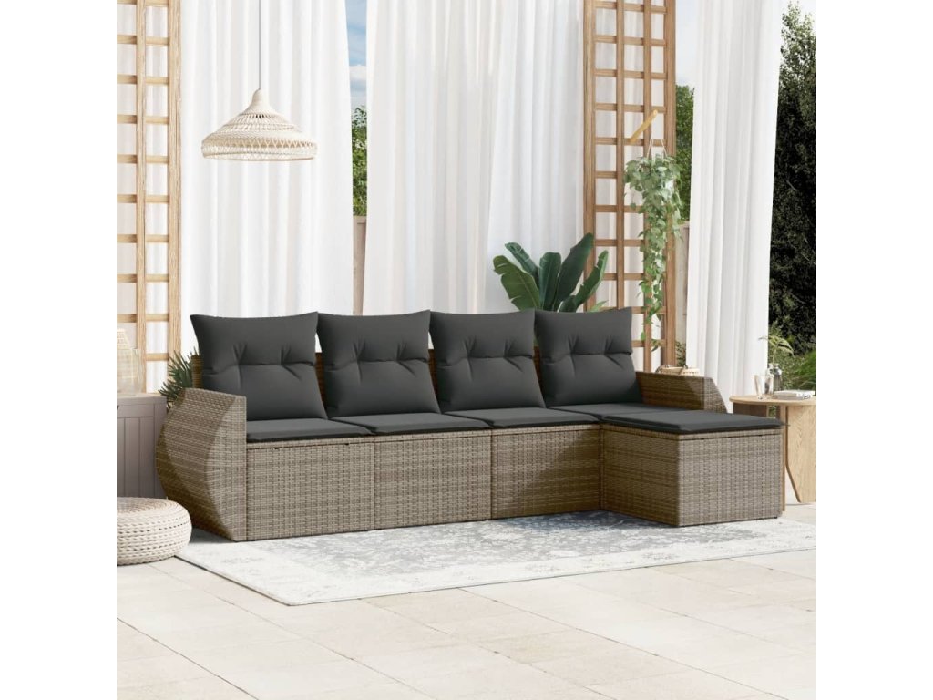 5dílná zahradní sedací souprava s poduškami šedá polyratan 3221289