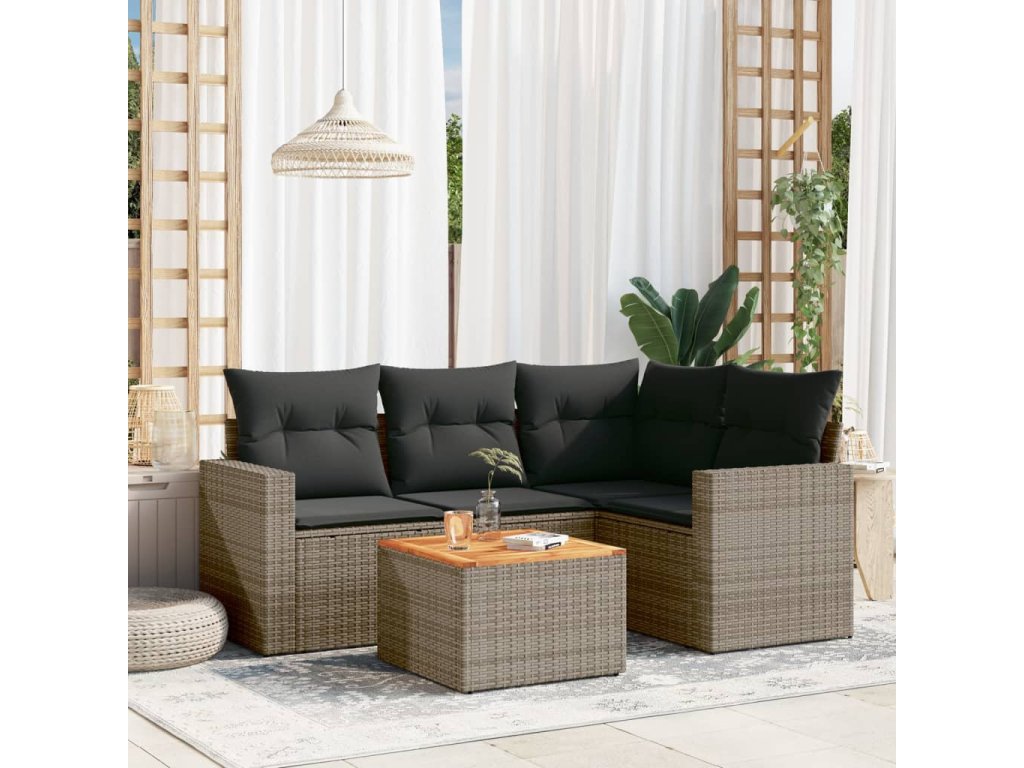 5dílná zahradní sedací souprava s poduškami šedá polyratan 3224107