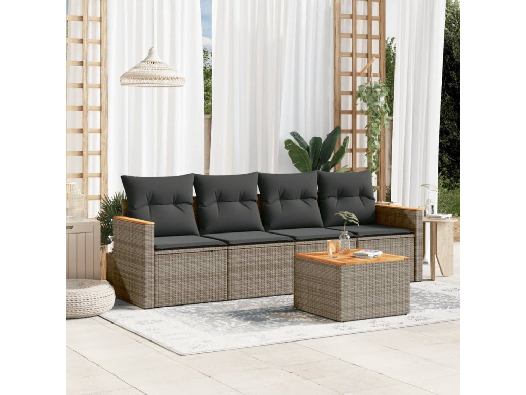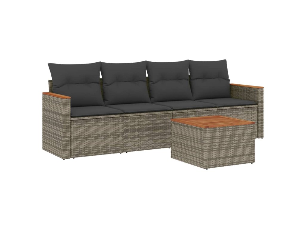 5dílná zahradní sedací souprava s poduškami šedá polyratan 3225780