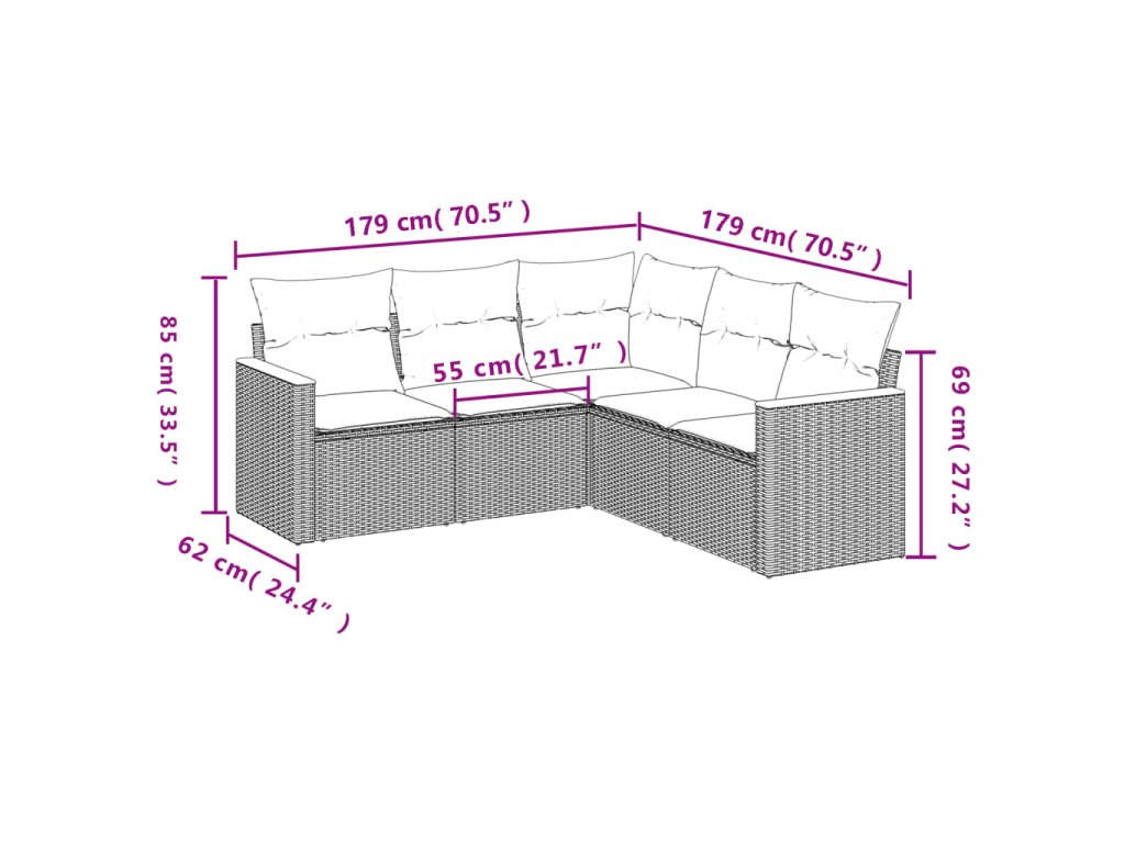 5dílná zahradní sedací souprava s poduškami šedá polyratan 3225962