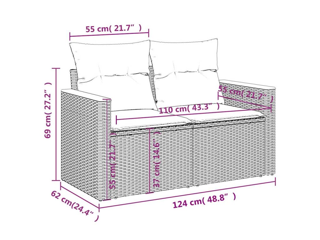 Tato zahradní sedací souprava je dokonalým doplňkem vaší zahrady, terasy nebo dvorku a poskytne vám pohodlné a příjemné místo, kde si můžete povídat s rodinou a přáteli nebo jen tak odpočívat a užívat si pobyt venku.