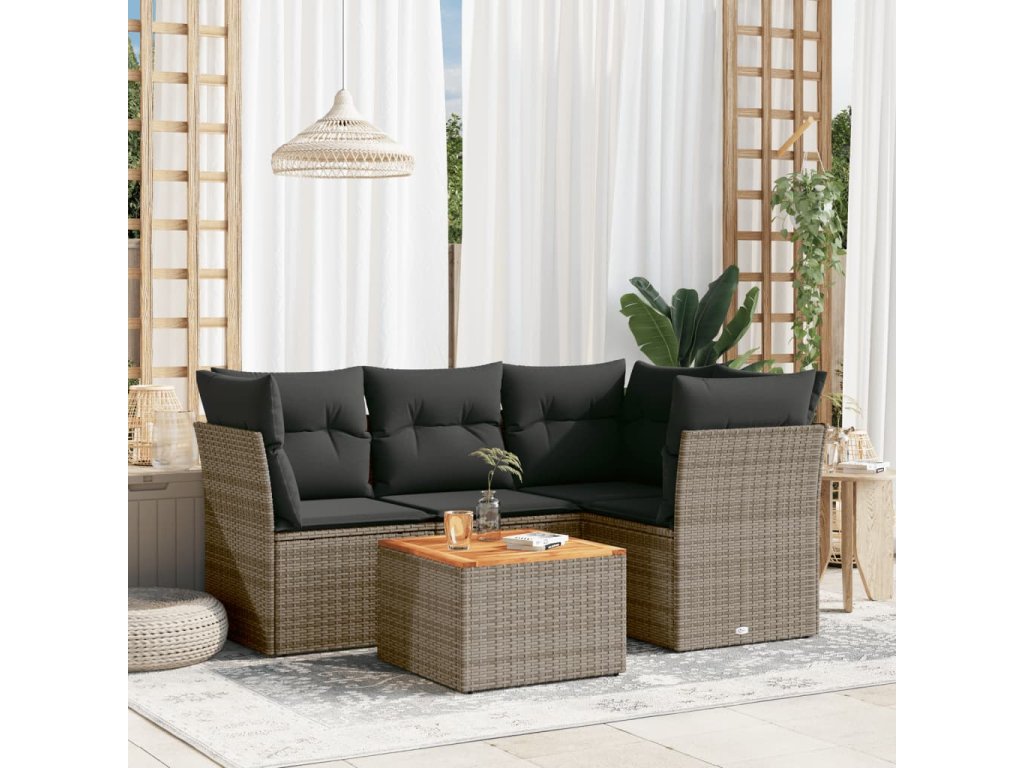 5dílná zahradní sedací souprava s poduškami šedá polyratan 3255955