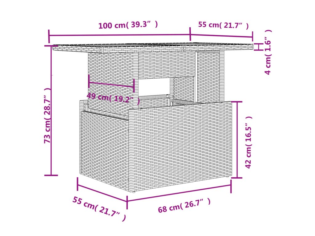 - Rozměry: 100 x 55 x 44/73 cm (D x Š x V)
