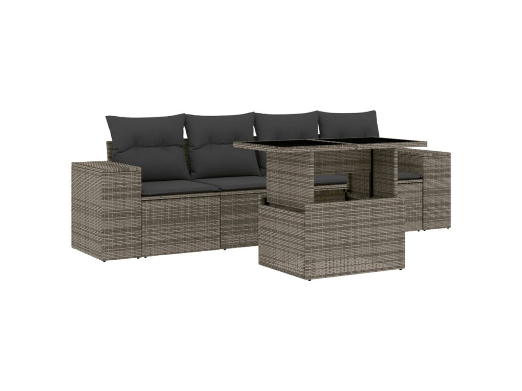 5dílná zahradní sedací souprava s poduškami šedá polyratan 3268990