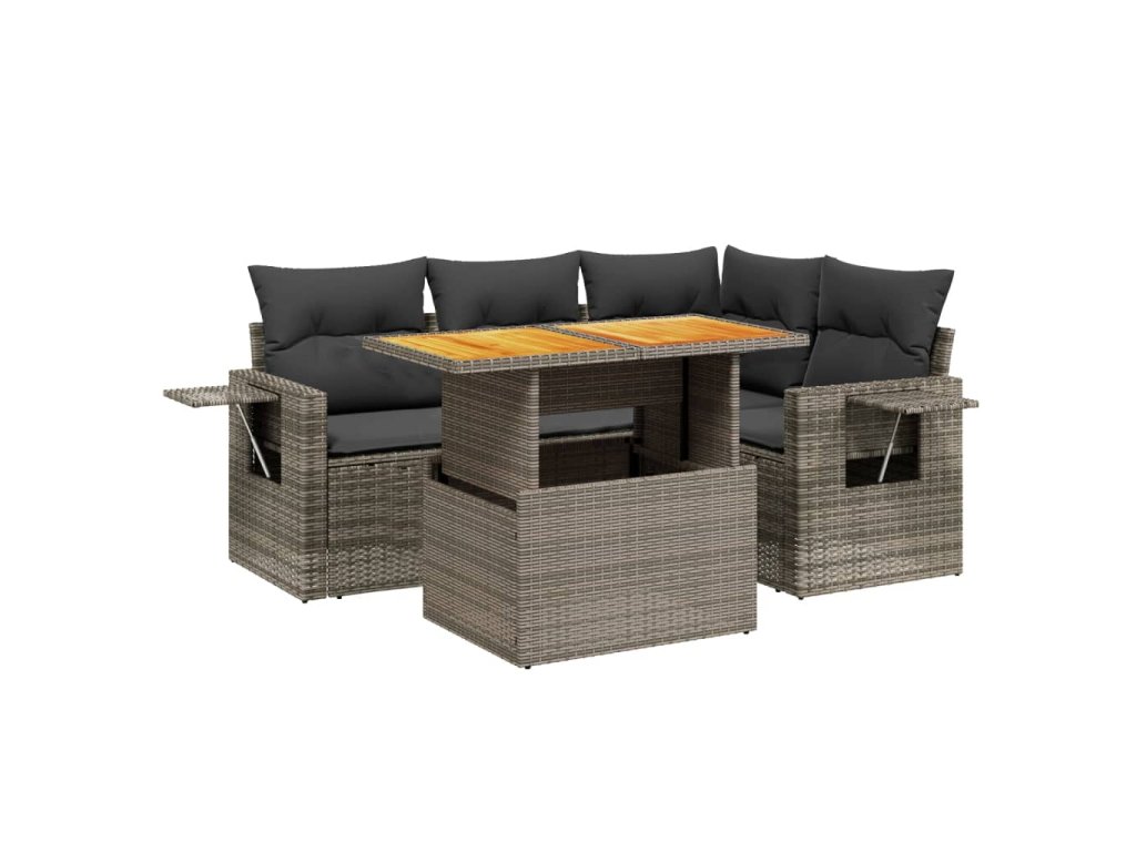5dílná zahradní sedací souprava s poduškami šedá polyratan 3271739